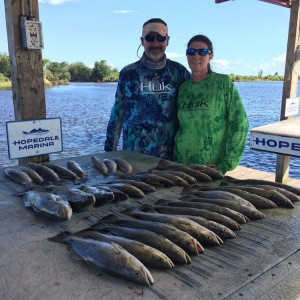Captian Ozzy and Momma Mel are both South Louisiana natives that love the outdoors. Whether you’re an experienced or a novice fishing person, we strive to make an unforgettable fishing experience for each of our customers. To see the smiles and excitement of someone reeling in a fish for the first time is why we started chartering. From reeling in a drag screaming red or a head shaking trout, we want to provide an unforgettable experience that keeps people coming back to the great outdoors. Come on down and let us show you South Louisiana at its finest. We cater to the younger generation and the older. All kids under 10 fish for free with parent aboard. Hope to see y'all soon!